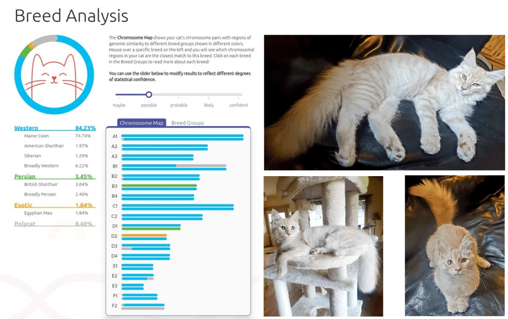 We knew about the Maine Coon heritage–look at her photos!–but decided to do the DNA test to learn more about her health markers.