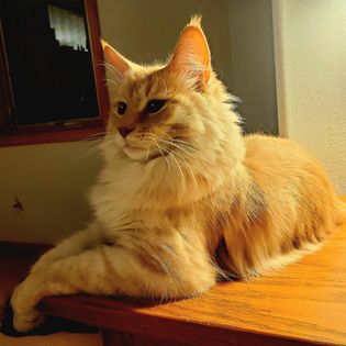 Siggy, my 1 1/2-year-old cat, enjoys playing fetch with small balls and running to the front door to go for a walk on her leash. She’s not an affectionate cat, as female Maine Coons tend to be independent and more like dogs, staying by you but not in your lap.