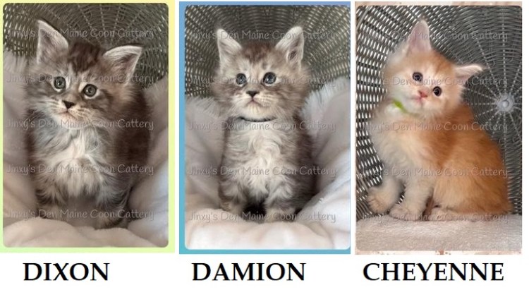 To reserve our new kitten, we had to choose from these three breathtaking kittens from Des Moines, Iowa, based Jinxy’s Den Maine Coon Cattery, which we of course recommend.