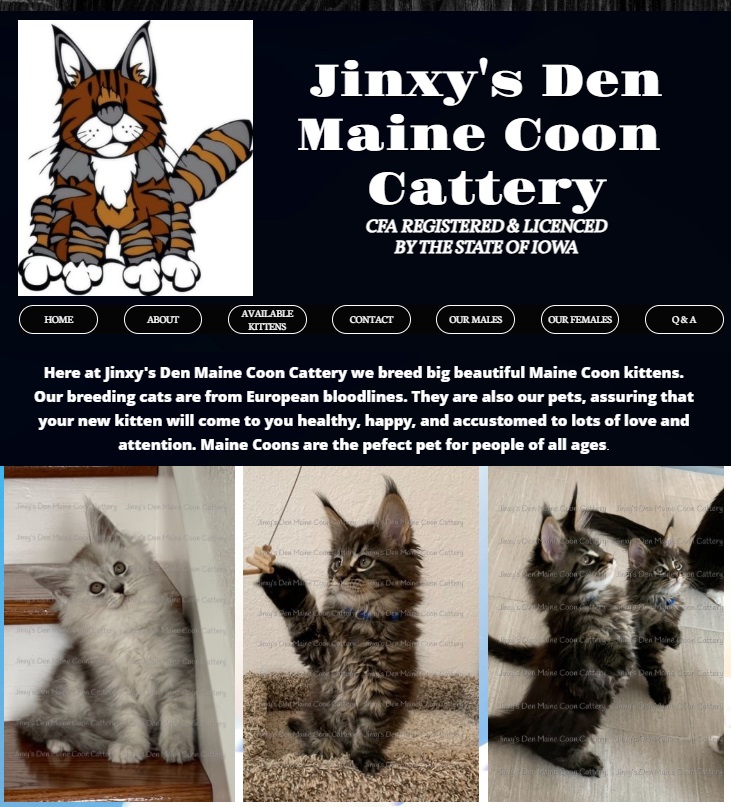We are exited to introduce kitten Thor to his soon-to-be sisters, Freya and Siggy, both four years old. We are especially thankful for breeder Susan Evans of Jinxy’s Den Maine Coon Cattery in Des Moines, Iowa.
