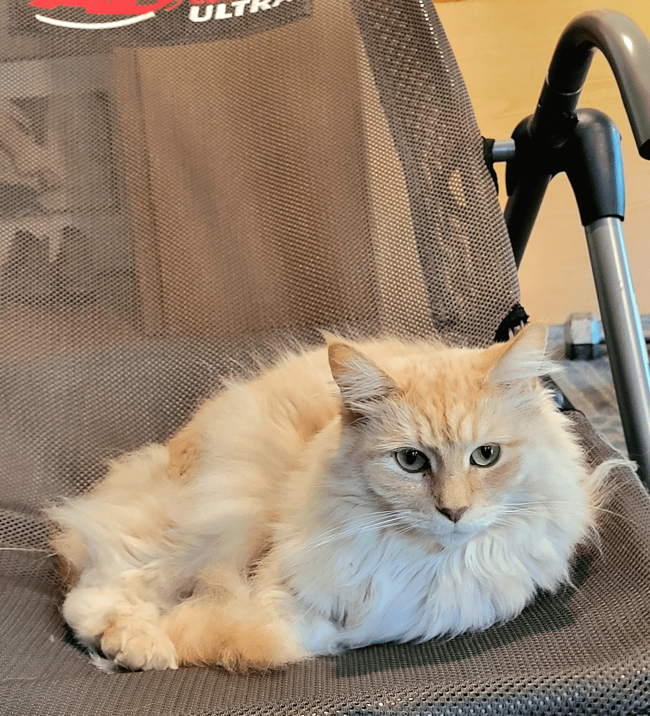 I know he still thinks I’m his person. He is so big he sleeps in my bathtub at night. It’s just his size.