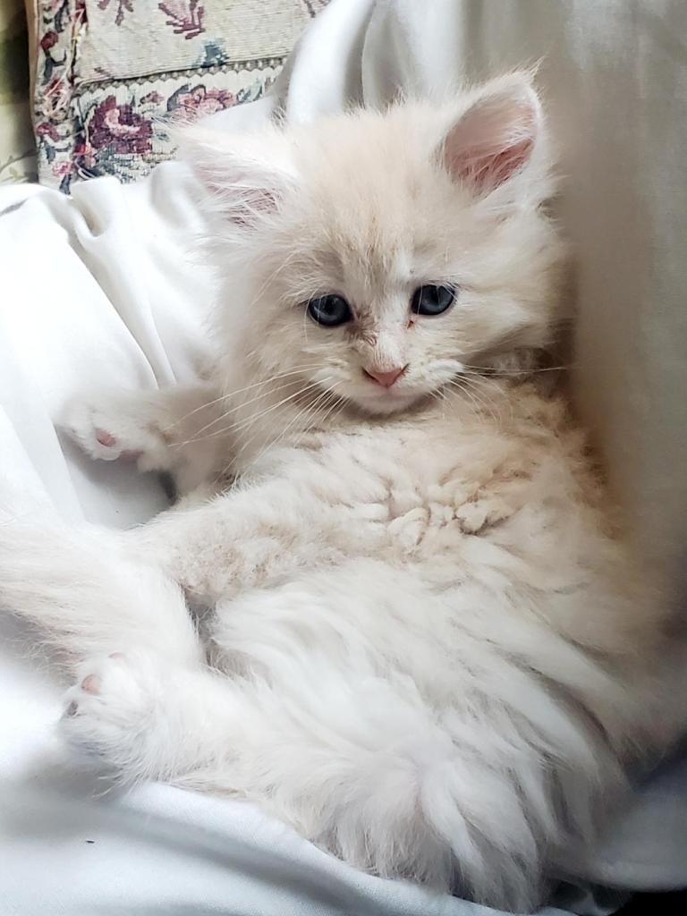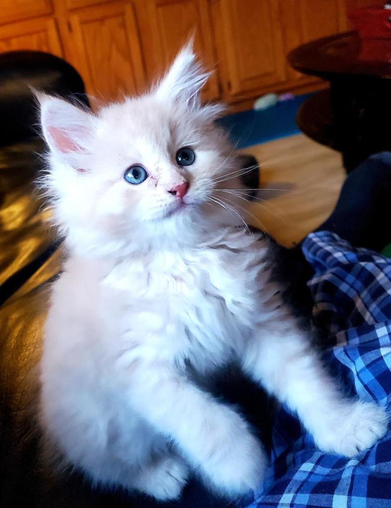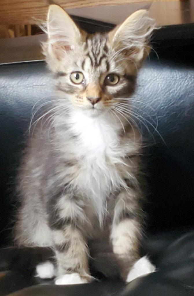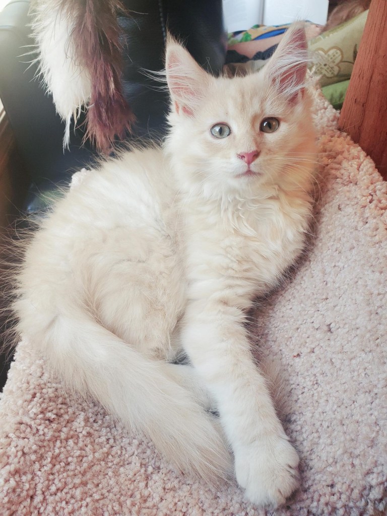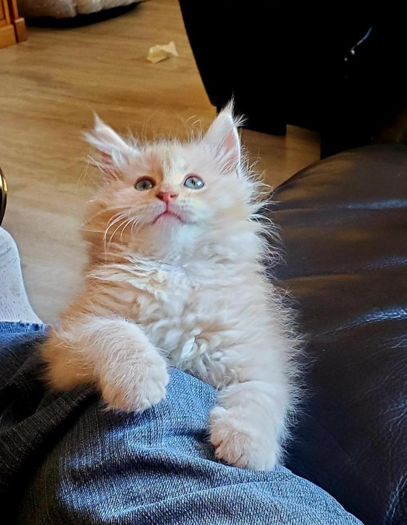 This page shows select photos of Freya, a Maine Coon, and Siggy, a Maine Coon (75% DNA) mix, as they mature from 7-14 weeks. Photos are uploaded in chronological order.